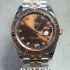 본 사진의 데이저스트는 다이아몬드가 세팅된 초콜렛 다이얼과 쥬빌리 브레슬릿을 갖춘 오이스터스틸과 에버로즈 골드 소재의 오이스터 퍼페츄얼 모델입니다.