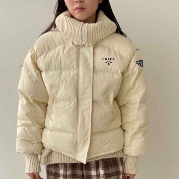 와이드 한 카라 니트가 포인트인 패딩입니다